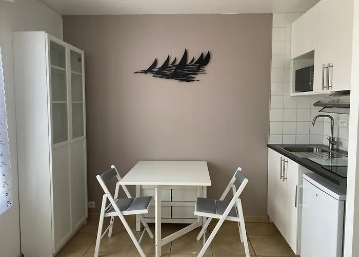 Az ingatlan önellátó felszereltségének részeként hűtővel, kenyérpirítóval és konyhai edényekkel felszerelt felszerelt konyha elérhető. Az Aeroport de Saint-Nazaire Montoir repülőtér 20 km-re, a Jacques Tati buszpályaudvar pedig csak 5 percnyi sétára található az apartman területétől. A túrázás lehetősége fokozza a vendégek élményeit. A Residence Fort De L'Eve - Studio A 380M Plage M Hulot, Commerces - St Marc Sur Mer Proche La Baule Pornichet Avec Terrasse van egy terasz, kilátással az udvarra.